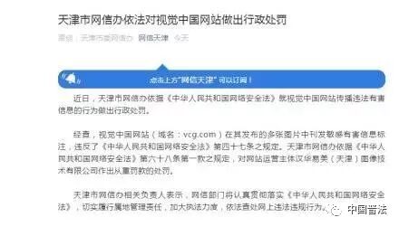 视觉中国在公告中称,公司积极配合天津市互联网信息办公室进行相关情况调查,接受天津市互联网信息办公室的处罚决定,并将按期缴纳罚款。上述处罚决定不会对公司的经营业绩产生重大影响。